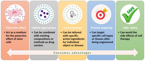 - Xia, C.; Zeng, Z.; Fang, B.; Tao, M.; Gu, C.; Zheng, L.; Wang, Y.; Shi, Y.; Fang, C.; Mei, S.; et al. Mesenchymal stem cell-derived exosomes ameliorate intervertebral disc degeneration via anti-oxidant and anti-inflammatory effects. Free Radic. Biol. Med. 2019, 143, 1–15. [Google Scholar] [CrossRef] [PubMed]