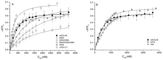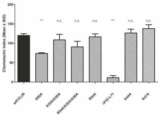 - Lau, E.K.; Paavola, C.D.; Johnson, Z.; Gaudry, J.-P.; Geretti, E.; Borlat, F.; Kungl, A.J.; Proudfoot, A.E.; Handel, T.M. Identification of the glycosaminoglycan binding site of the CC chemokine, MCP-1: Implications for structure and function in vivo. J. Biol. Chem. 2004, 279, 22294–22305. [Google Scholar] [CrossRef]