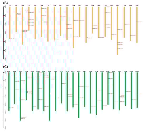 4.5. Chromosomal Location, Gene Duplication, and Synteny Analysis