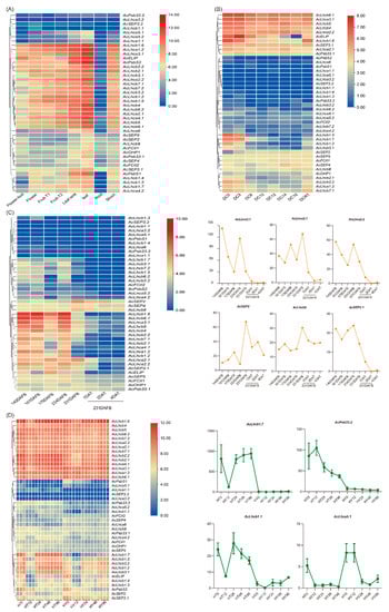 - Lescot, M.; Déhais, P.; Thijs, G.; Marchal, K.; Moreau, Y.; Van de Peer, Y.; Rouzé, P.; Rombauts, S. PlantCARE, a database of plant cis-acting regulatory elements and a portal to tools for in silico analysis of promoter sequences. Nucleic Acids Res. 2002, 30, 325–327. [Google Scholar] [CrossRef]