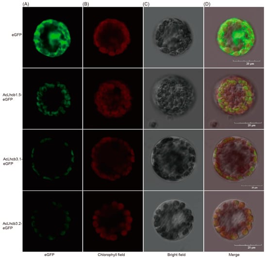 4.10. Subcellular Localization of AcLHCs and Transformation