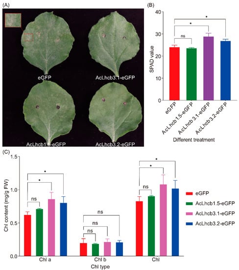 2.6. Subcellular Localization of Kiwifruit LHC and Transient Transformation of AcLhcb Genes in Tobacco Leaves
