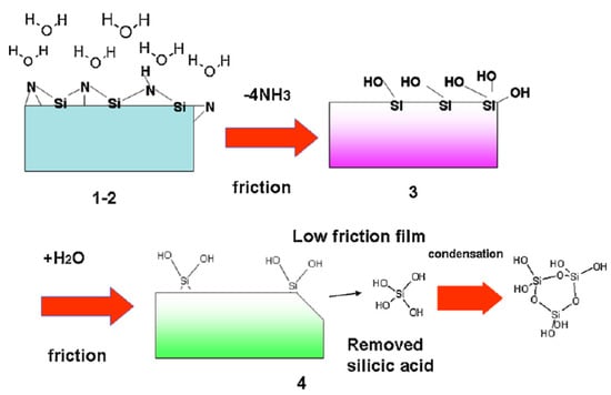 - Dante, C.R.; Kajdas, C.K. A review and a fundamental theory of silicon nitride tribochemistry. Wear 2012, 288, 27–38. [Google Scholar] [CrossRef]
