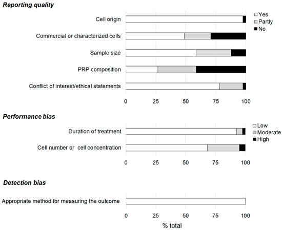 3.1. Reporting Quality and Risk of Bias