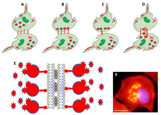 - Jansens, R.J.J.; Tishchenko, A.; Favoreel, H.W. Bridging the Gap: Virus Long-Distance Spread via Tunneling Nanotubes. J. Virol. 2020, 94, e02120-19. [Google Scholar] [CrossRef] [PubMed]