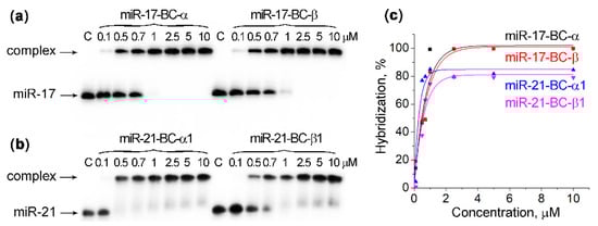 - Patutina, O.A.; Miroshnichenko, S.K.; Lomzov, A.A.; Mironova, N.L.; Zenkova, M.A. Search for Oligonucleotides Selectively Binding Oncogenic MiR-21. Russ. J. Bioorg. Chem. 2017, 43, 29–37. [Google Scholar] [CrossRef]