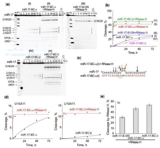2.5. Efficiency of miRNA Cleavage by Bulge-Forming miRNases in the Presence of RNase H