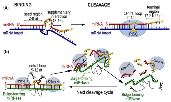 2.2. Hybridization of Bulge-Forming miRNases with miRNA Targets