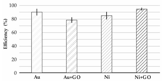 A high cell retention rate was observed at the microsieves as follows: Au—89.7%, Au + GO—78.4%, Ni—84.8%, and Ni + GO—94.5% (Figure 5).