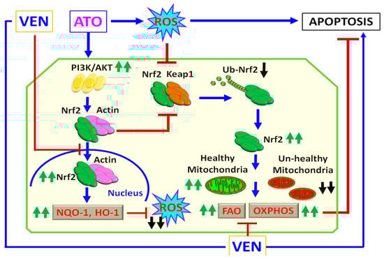 - Nguyen, L.X.T.; Troadec, E.; Kalvala, A.; Kumar, B.; Hoang, D.H.; Viola, D.; Zhang, B.; Nguyen, D.Q.; Aldoss, I.; Ghoda, L.; et al. The Bcl-2 inhibitor venetoclax inhibits Nrf2 antioxidant pathway activation induced by hypomethylating agents in AML. J. Cell Physiol. 2019, 234, 14040–14049. [Google Scholar] [CrossRef] [PubMed]