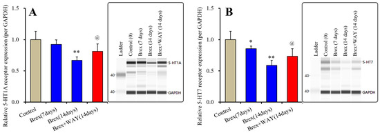 3.1. Effects of Subchronic Administration of Brex on the Expression of 5-HT1AR and 5-HT7R in Astrocytes