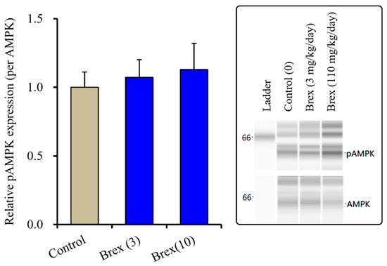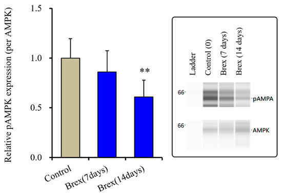 2.4.1. Effects of Subchronic Systemic Administration of Brex on pAMPK in the Hypothalamus