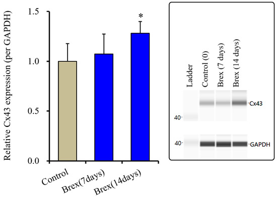 2.2. Effects of Subchronic Administration of a Therapeutically Relevant Concentration of Brex on Connexin43 Protein Expression in Astrocytes