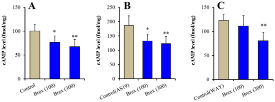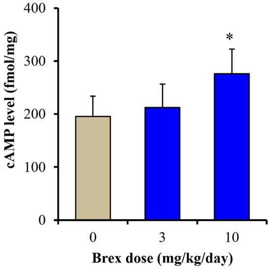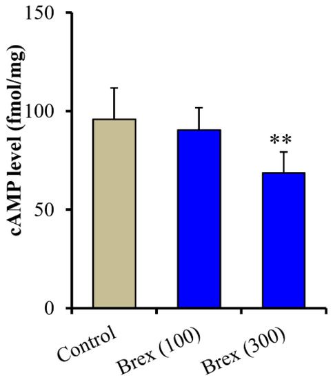 2.4.2. Effects of Subchronic Systemic Administration of Brex on cAMP Levels in the Hypothalamus