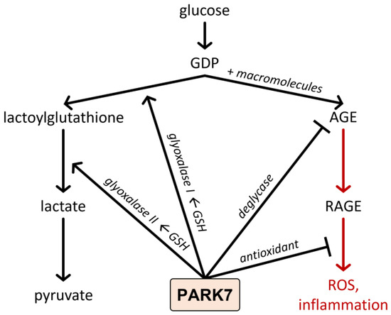 - Lee, J.-Y.; Song, J.; Kwon, K.; Jang, S.; Kim, C.; Baek, K.; Kim, J.; Park, C. Human DJ-1 and its homologs are novel glyoxalases. Hum. Mol. Genet. 2012, 21, 3215–3225. [Google Scholar] [CrossRef] [PubMed]