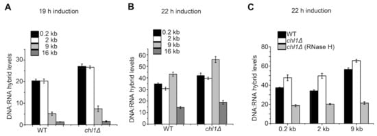 2.3. Chl1 Suppresses DNA:RNA Hybrid Accumulation at DSB Sites