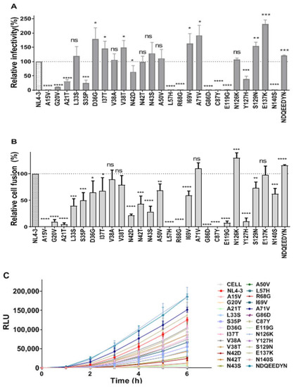 2.6. Effects of Single-Point Mutations on Viral Entry and Fusion