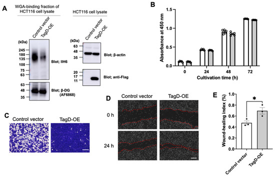 - Bao, X.; Kobayashi, M.; Hatakeyama, S.; Angata, K.; Gullberg, D.; Nakayama, J.; Fukuda, M.N.; Fukuda, M. Tumor suppressor function of laminin-binding α-dystroglycan requires a distinct β3-N-acetylglucosaminyltransferase. Proc. Natl. Acad. Sci. USA 2009, 106, 12109–12114. [Google Scholar] [CrossRef]