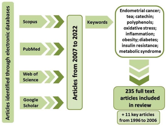 - Tang, N.P.; Li, H.; Qiu, Y.L.; Zhou, G.M.; Ma, J. Tea consumption and risk of endometrial cancer: A metaanalysis. Am. J. Obstet. Gynecol. 2009, 201, 605. [Google Scholar] [CrossRef]