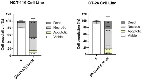 3.12. In Vitro Safety Assay of [ZnL(AcO)]