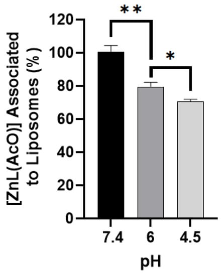 | [ZnL(AcO)] in liposomal form (F4) | 11.8 ± 0.3 | 14.3 ± 0.8 |