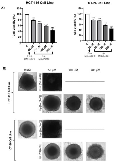 Chicago/Turabian StyleRibeiro, Nádia, Melissa Albino, Andreia Ferreira, Cristina Escrevente, Duarte C. Barral, João Costa Pessoa, Catarina Pinto Reis, Maria Manuela Gaspar, and Isabel Correia. 2022. "Liposomal Formulations of a New Zinc(II) Complex Exhibiting High Therapeutic Potential in a Murine Colon Cancer Model" International Journal of Molecular Sciences 23, no. 12: 6728. https://doi.org/10.3390/ijms23126728
