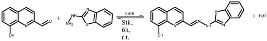 - Lindgren, E.; de Brito, M.; Vasconcelos, T.; de Moraes, M.; Montenegro, R.; Yoneda, J.; Leal, K. Synthesis and anticancer activity of (E)-2-benzothiazole hydrazones. Eur. J. Med. Chem. 2014, 86, 12–16. [Google Scholar] [CrossRef]