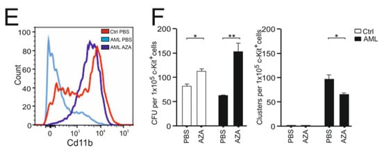 - Curik, N.; Burda, P.; Vargova, K.; Pospisil, V.; Belickova, M.; Vlckova, P.; Savvulidi, F.; Necas, E.; Hajkova, H.; Haskovec, C.; et al. 5-azacitidine in aggressive myelodysplastic syndromes regulates chromatin structure at PU.1 gene and cell differentiation capacity. Leukemia 2012, 26, 1804–1811. [Google Scholar] [CrossRef] [PubMed]
