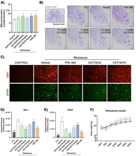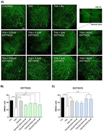2.3. EST79232 and EST79376 Enhance MN Survival after Rhizotomy