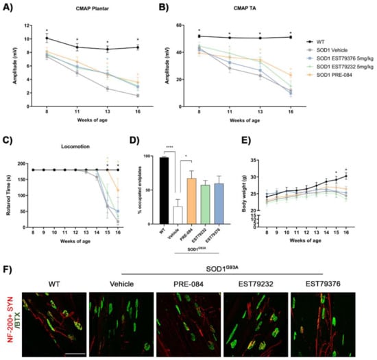 2.4. EST79232 Treatment Slows Disease Progression in SOD1G93A Mice