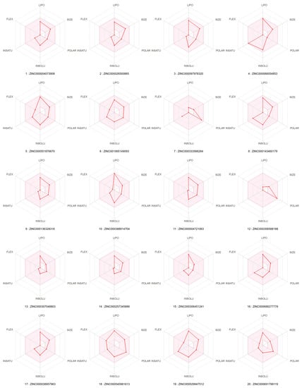 Regarding the LIPO spoke, the depiction of the pink region is ambiguous because it is highly discontinuous between the clockwise side of LIPO and the counterclockwise side of LIPO, the counterclockwise side being much more tolerant to small values of LIPO than the clockwise side of it. The correct reference pink region for LIPO is the one at the clockwise side of LIPO (the strictest one). The pink region is again discontinuous and hence ambiguous at POLAR; in this case, the clockwise side is tolerant to small values. In the case of POLAR, the correct pink region to be used for reference is the one at the counterclockwise side of POLAR (again the strictest one).