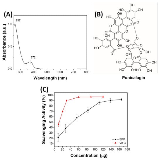 2.1. Characterization of Pomegranate Peel Extracts (EPP)