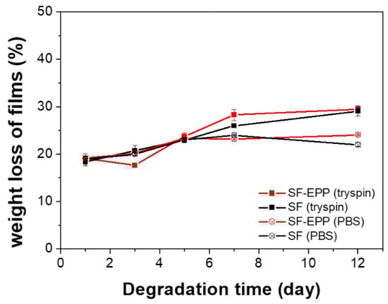 3.7. SF and SF-EPP PBS Stability and Biodegradability