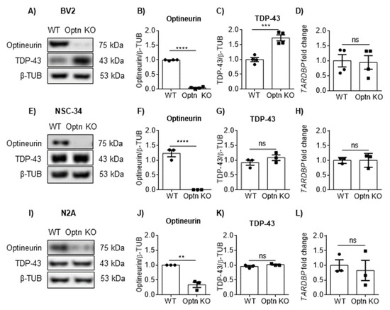 2.1. Optineurin Deficiency Led to an Increase of TDP-43 in BV2 Microglial Cell Line