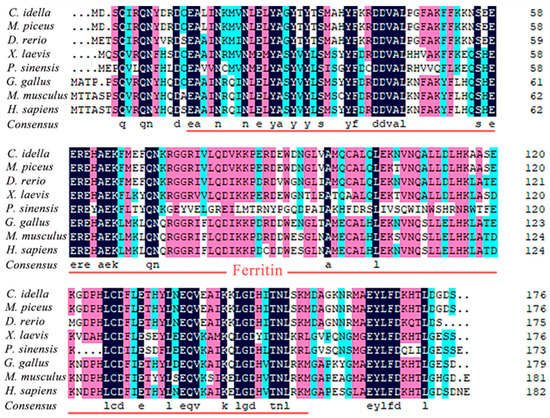 Multiple sequence alignment of Ciferritin with other homologs. The functional domain of ferritin was underlined.