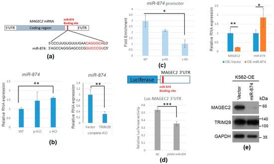 2.5. TRIM28 KO Induces miR-874 to Downregulate MAGEC2 Expression
