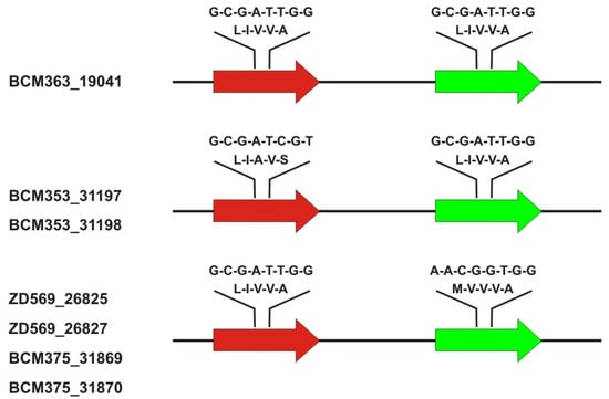 The novel G-C-G-A-T-T-G-G (‘L-I-V-V-A’) haplotype was present either in both OPN1LW and OPN1MW (BCM363_19041), only in the OPN1LW gene (ZD569 and BCM375 family, two affected brothers each) or only in the OPN1MW gene (both brothers of the BCM353 family). Both brother pairs in the ZD569 and the BCM375 families carried the A-A-C-G-G-T-G-G (‘M-V-V-V-A’) exon 3 haplotype in their OPN1MW gene copy, and both brothers of the BCM353 family carried the G-C-G-A-T-C-G-T (‘L-I-A-V-S’) exon 3 haplotype in their OPN1LW gene (Table 1, Figure 1).