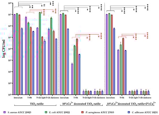 - Mathew, S.; Ganguly, P.; Rhatigan, S.; Kumaravel, V.; Byrne, C.; Hinder, S.; Bartlett, J.; Nolan, M.; Pillai, S. Cu-Doped TiO2: Visible Light Assisted Photocatalytic Antimicrobial Activity. Appl. Sci. 2018, 8, 2067. [Google Scholar] [CrossRef] [Green Version]