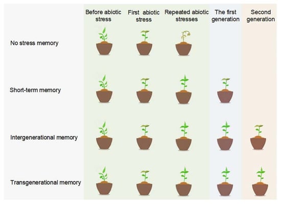 - Lamke, J.; Baurle, I. Epigenetic and chromatin-based mechanisms in environmental stress adaptation and stress memory in plants. Genome Biol. 2017, 18, 124. [Google Scholar] [CrossRef] [PubMed]