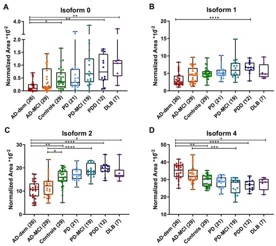 3.2. CSF SerpinA1 Isoforms in Diagnostic Subgroups