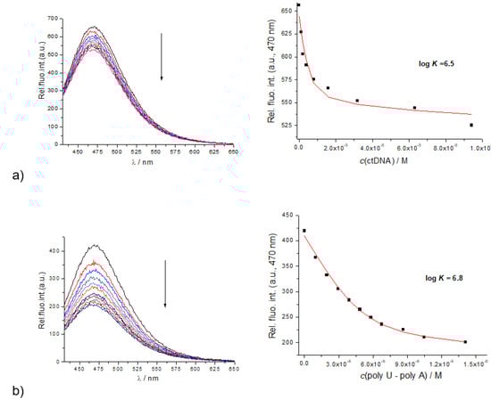 - Tumir, L.-M.; Piantanida, I.; Cindrić, I.J.; Hrenar, T.; Meić, Z.; Žinić, M. New permanently charged phenanthridinium-nucleobase conjugates. Interactions with nucleotides and polynucleotides and recognition of ds-polyAH+. J. Phys. Org. Chem. 2003, 16, 891–899. [Google Scholar] [CrossRef]