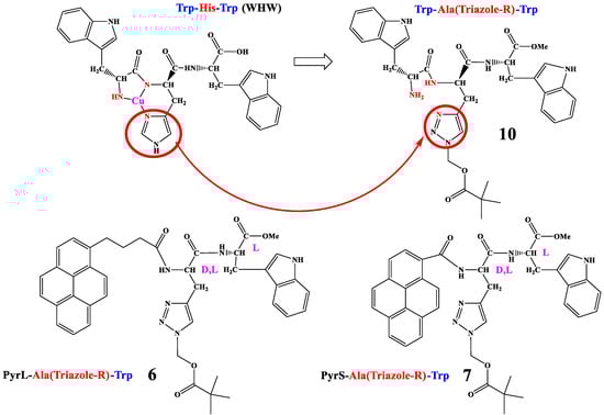 Krošl, I.; Košćak, M.; Ribičić, K.; Žinić, B.; Majhen, D.; Božinović, K.; Piantanida, I. Impact of the Histidine-Triazole and Tryptophan-Pyrene Exchange in the WHW Peptide: Cu(II) Binding, DNA/RNA Interactions and Bioactivity. Int. J. Mol. Sci. 2022, 23, 7006. https://doi.org/10.3390/ijms23137006