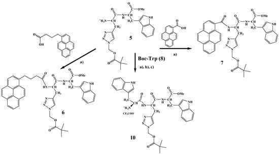 - Astakhova, I.V.; Korshun, V.A.; Wengel, J. Highly Fluorescent Conjugated Pyrenes in Nucleic Acid Probes: (Phenylethynyl)pyrenecarbonyl-Functionalized Locked Nucleic Acids. Chem. Eur. J. 2008, 14, 11010–11026. [Google Scholar] [CrossRef] [PubMed]