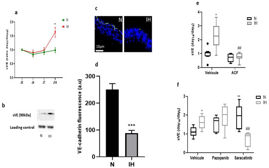 - Harki, O.; Tamisier, R.; Pépin, J.-L.; Bailly, S.; Mahmani, A.; Gonthier, B.; Salomon, A.; Vilgrain, I.; Faury, G.; Briançon-Marjollet, A. VE-cadherin cleavage in sleep apnoea: New insights into intermittent hypoxia-related endothelial permeability. Eur. Respir. J. 2021, 58, 2004518. [Google Scholar] [CrossRef] [PubMed]