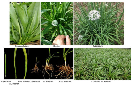 - Xie, D.F.; Tan, J.B.; Yu, Y.; Gui, L.J.; Su, D.M.; Zhou, S.D.; He, X.J. Insights into phylogeny, age and evolution of Allium (Amaryllidaceae) based on the whole plastome sequences. Ann. Bot. 2020, 125, 1039–1055. [Google Scholar] [CrossRef]