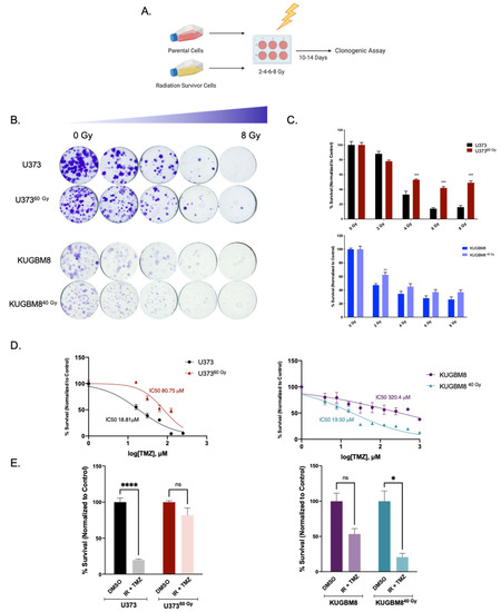 2.1. Generation of Radiation Survivor (IR-Surv) Glioblastoma Cell Populations