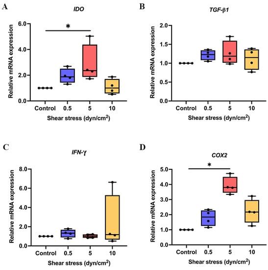 3.1. Shear Stress Enhanced the Expression of Immunosuppressive Regulators