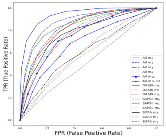 Prediction of mortality in critically ill patients with thrombosis or cancer using ML algorithms has not been extensively studied so far. To the best of our knowledge, the only study in the literature that investigates ICU patients with thrombosis is [32]. The study is based on a relatively small number of patients, and the authors used only admission data, developing two models for 30-day mortality prediction based on logistic regression, and least absolute shrinkage and selection operator (Lasso) for feature selection. Regarding patients with cancer, there is a paucity of studies predicting mortality in the ICU. In [34], the authors provide a systematic review on ML-based early mortality prediction in cancer patients (but not critically ill patients). The average area under the receiver operating characteristic curve () is 0.72–0.92 and differs between the various cancer types. The absence of studies in this field can be partly explained by the fact that the admission of cancer patients to the ICU is considered frequently unavailing, and physicians sometimes discourage their patients and families from proceeding with aggressive treatment. Nevertheless, it is highly important to recognize the patients who would benefit from intensive care treatment. Traditional clinical scores, such as APACHE, fail to predict accurately individual outcomes in these patients [35,36], and thus there is a need for more sophisticated models.