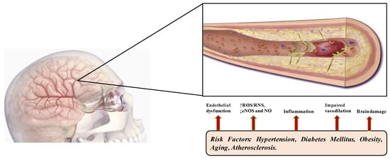 With aging of endothelial cells, therefore, a vicious circle is established through oxidative stress and inflammation, which progressively suppress the endothelial function and its ability to ensure a balance between vasodilating and vasoconstricting factors in favour of vasoconstriction, and this imbalance causes cerebrovascular dysfunction [].