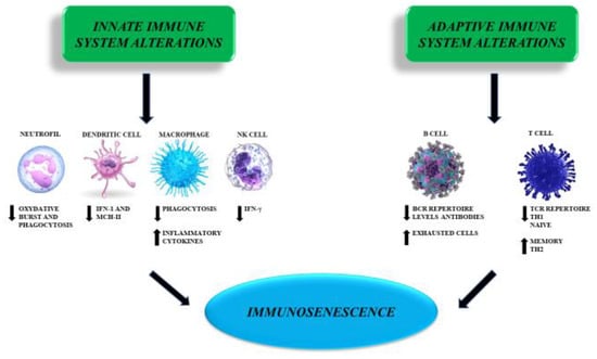 Aging is characterized by immune-related modifications that determine susceptibility to infectious diseases, increased risk of cancer and cardiovascular diseases, and reduction in the effectiveness of vaccines. These conditions depend on a decline in the immune system called “immunosenescence” [].